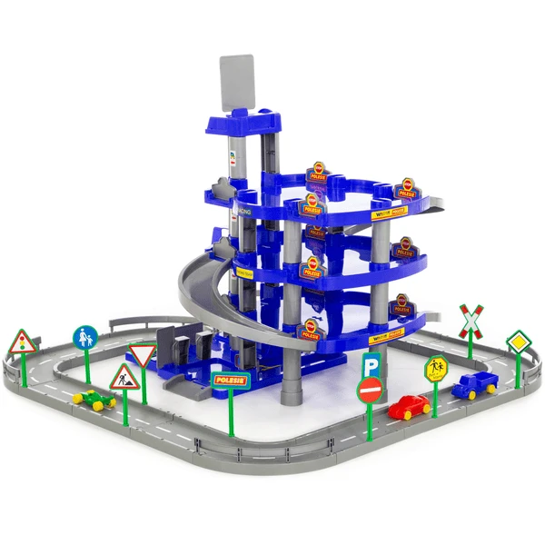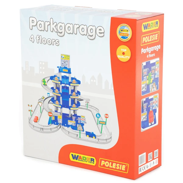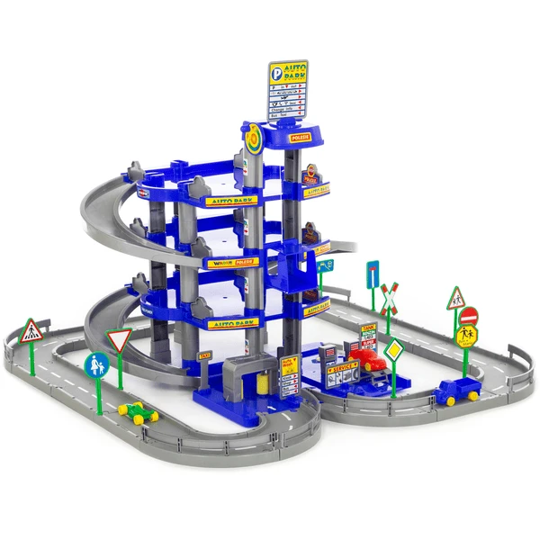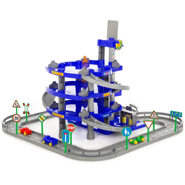 El colorido Auto Park Garage de WADER ofrece diversión en 4 niveles. Una calle de juego de aprox. 2,7 metros de largo con tráfico child y 3 coches completan la diversión.