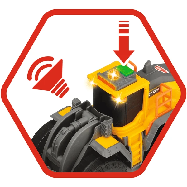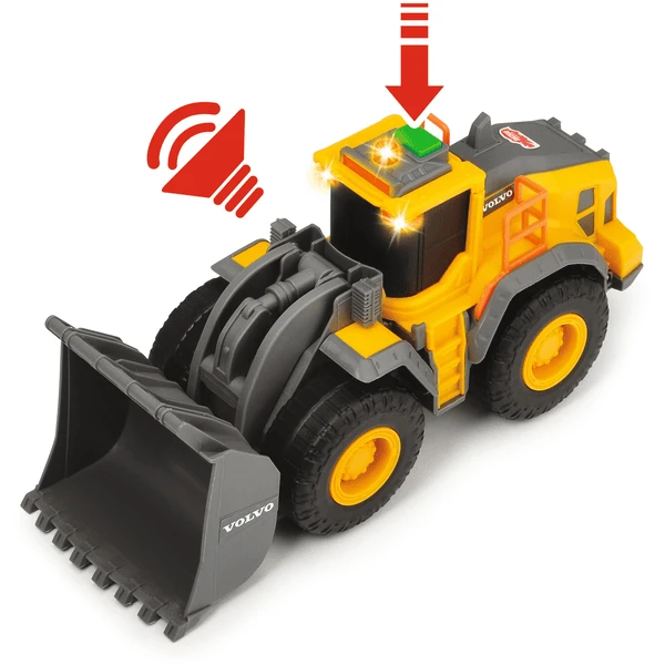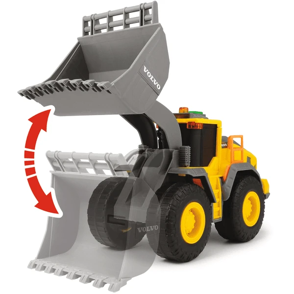 A más tardar cuando el Dickie Cargador de Ruedas de Juguetes es desempacado, el cuarto de los niños se convierte en una elegante obra de construcción. Porque esta interpretación infantil del clásico de Volvo tiene todo lo que hace que el modelo real sea un empaquetador fascinante en la escena callejera. La pala se puede mover hacia arriba y hacia abajo manualmente y, por supuesto, también se puede inclinar para colocar la carga. La luz y el sonido animan los sentidos y hacen que el mundo de la fantasía sea aún más colorido. Este coche de juguete con función de rueda libre se convertirá seguramente en el centro de atención de los niños de tres años en adelante.