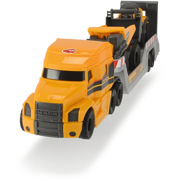 El Dickie juego Toys Micro Build er Truck con Original licencia de Volvo consiste en tres coches de juguete amantes de los detalles con función de rueda libre, con los que los niños a partir de los tres años pueden crear su propia obra de fantasía. El Mack Truck ofrece una gran área de carga que puede acomodar el camión volquete Volvo y el cargador de ruedas. El Truck área de carga tiene una solapa móvil. El cargador de ruedas y el camión volquete también pueden moverse en la zona de cubos y contenedores. Incluso las manos de los niños sin experiencia pueden fácilmente acoplar y desacoplar el Truck remolque. Este juego ofrece diversión de juego simplemente fuerte en la versión triple.