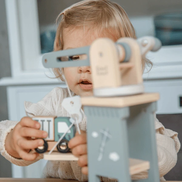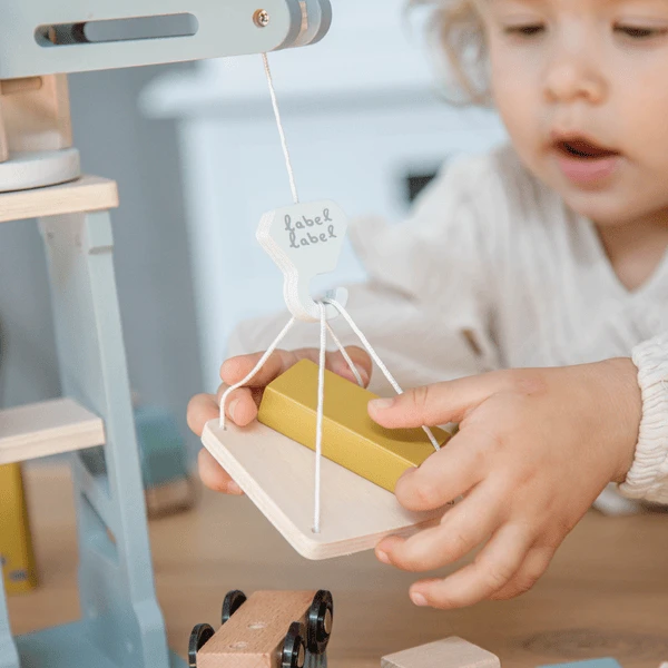 - El set se compone de una grúa, 6 vehículos de construcción, un palé, 13 ladrillos y una carretera child