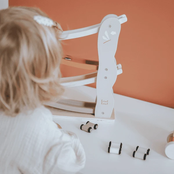 - Coloca el coche en el tobogán y observa cómo baja y da vueltas.