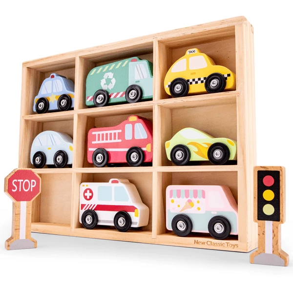 - Este set consta de 8 vehículos diferentes, un STOP-S child y un semáforo