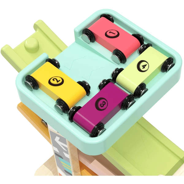 - 4 coches coloreados y numerados