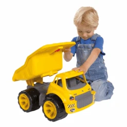 Equipado con un volquete, una práctica asa de transporte, neumáticos de plástico y un gran volumen de carga.